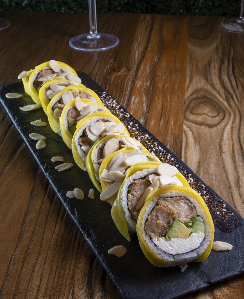 ENVUELTO EN MANGO CUBIERTO DE ALMENDRAS.